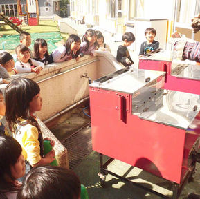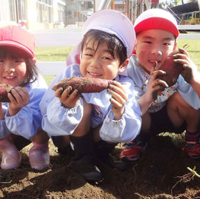 高校生と一緒にお芋の苗を植えます。水まきや草引きをして育てたお芋を10月に一緒に掘ります。土をかきわけ、お芋がとれたと時のなんとも言えない子ども達の嬉しそうな顔!! とれたお芋で焼き芋にして“フーフー”しながら食べます。