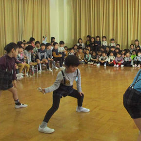年長組はたくさんの思い出を抱えて幼稚園を巣立っていきます。卒園する年長組のために開かれる“お別れ会”では、満3歳・年少・年中組の子ども達がプレゼントを渡し、先生達が劇を披露し、園長先生が手品を見せてくれます。